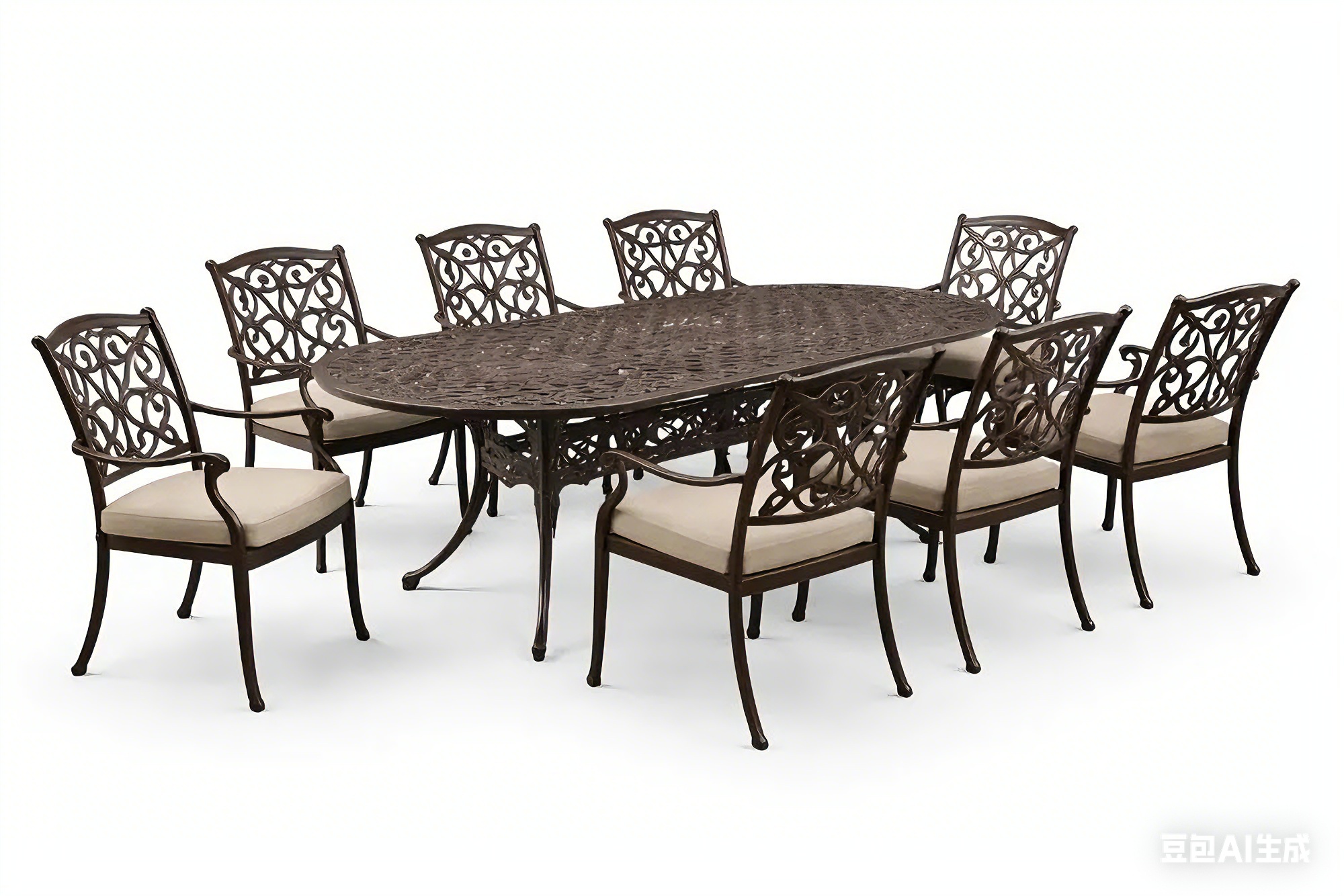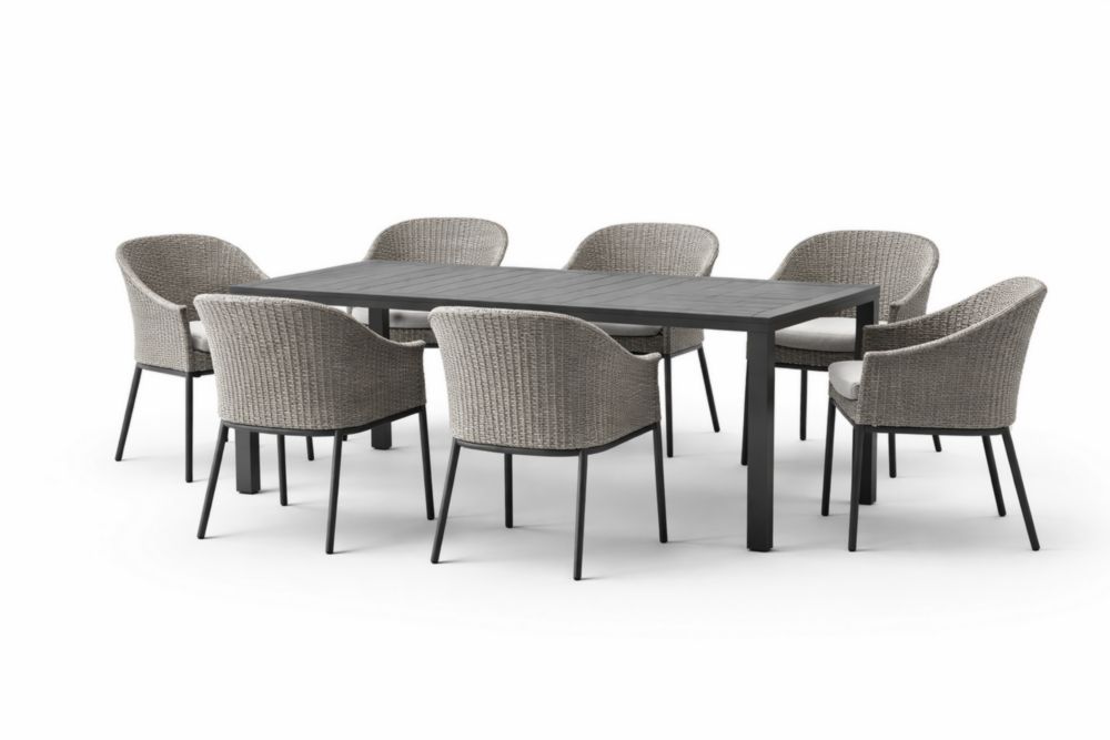 Outdoor Dining Set Rectangular Table 8 Chairs Wicker Rattan Grey