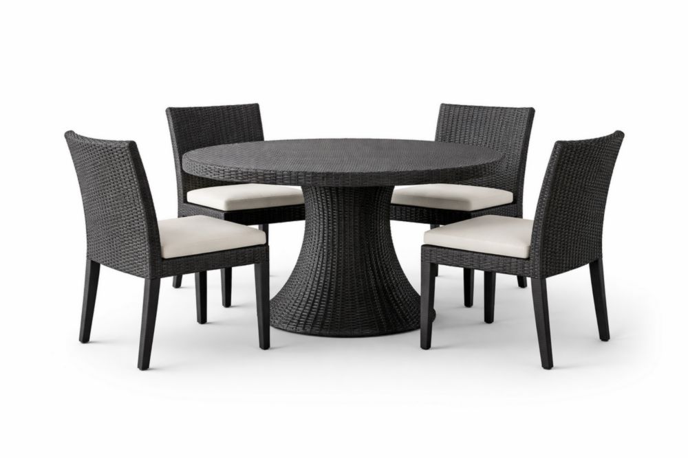 Round Wicker Outdoor Dining Table and Chairs Set with Cushions Black