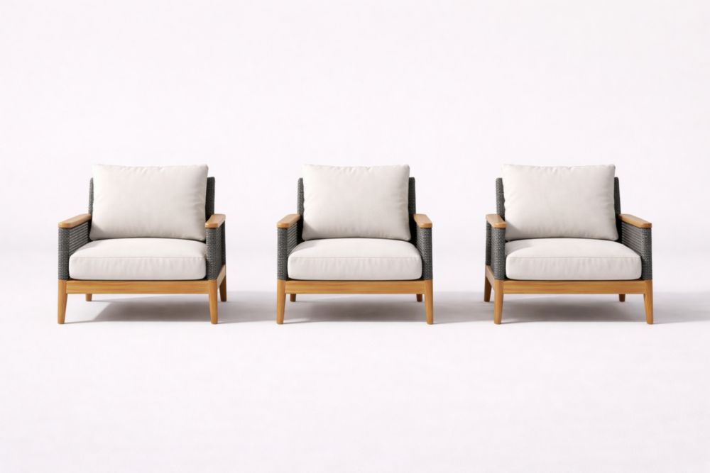 Teak Outdoor Lounge Chair Set Beige Cushions Wicker Finish