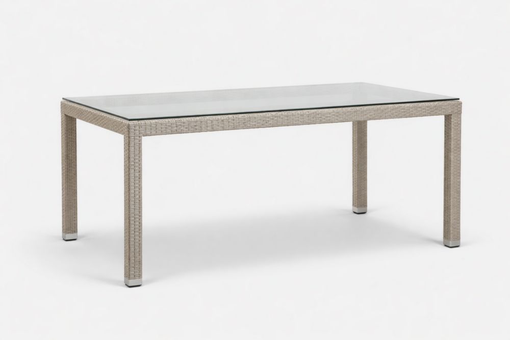Material: 8mm Tempered glass top, aluminum frame, synthetic rattan weave
